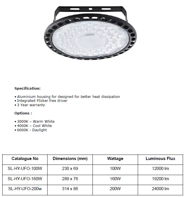 • UFO LED high bay lights are high powered circular lights designed to illuminate floor spaces from high ceiling heights.